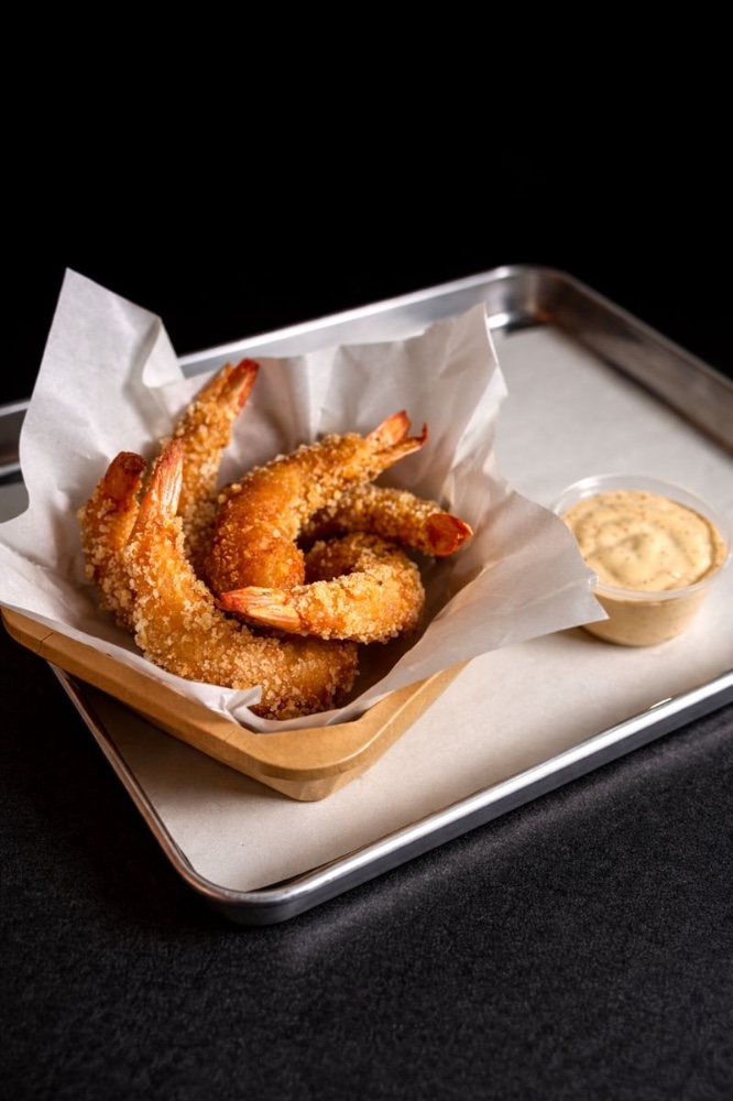 Печений в тандирі лаваш, тигрові креветки панко, салат айсберг, соус з ікрою тобіко, кукурудза, помідор, огірок, болгарський перець, салат чука.400гр